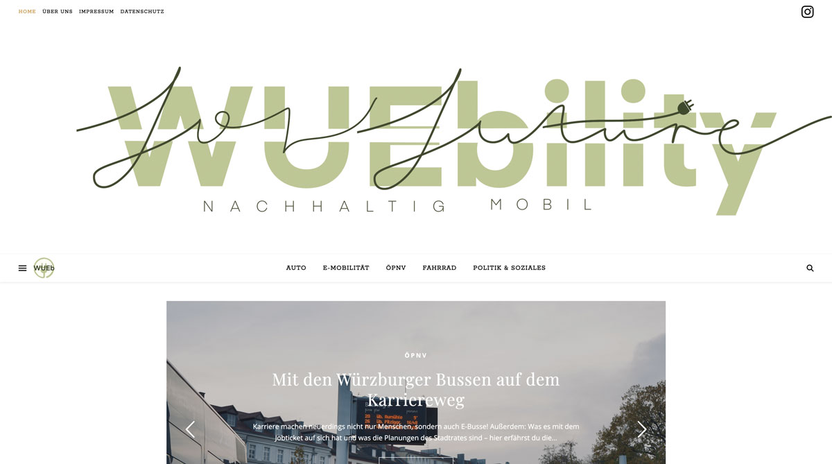 Beginnend mit dem 11.11.2022 wurde auf der Website www.wuebilityforfuture.de im Rahmen des Erstsemester-Projekts des Studiengangs Medienmanagement der Technischen Hochschule Würzburg-Schweinfurt ein Blog über nachhaltige Mobilität in Würzburg geführt. Wir freuen uns über jeden Leser und hoffen, euch diese Thematik etwas näher bringen zu können.